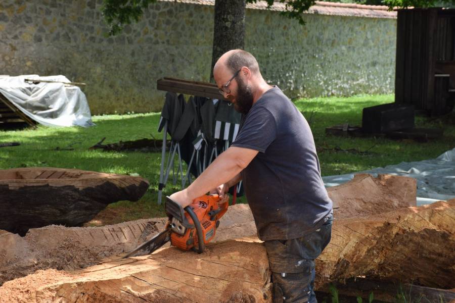 dva kiparja, ki ustvarjata novi deli za tamkajšnji park skulptur –