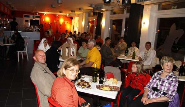 V klubu Mladinskega centra Brežice je bil včerajšnji nedeljski večer izjemno lep. Dogajalo se je in to veselo, razigrano, zanimivo. Proti večeru se je mimo kombija ekipe RTV Slovenije, ki je že postavila kamere pred pomladno sceno z ozadjem parka in brežiškega gradu, začela polniti prijetna prelepa dvorana kluba.