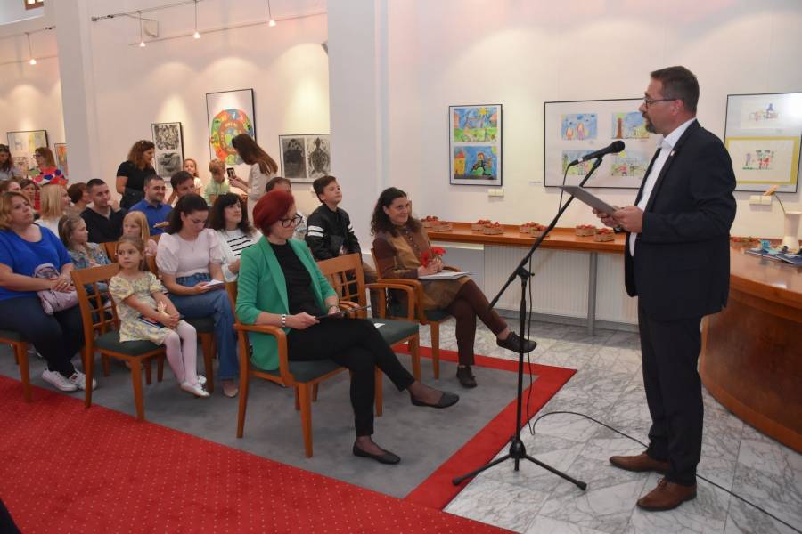 odprtje razstave izbranih del 5. likovnega natečaja z naslovom Brezmejna ustvarjalnost mladih 2024, ki ga je organizirala