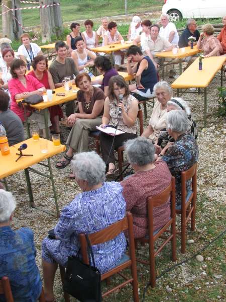 Pogovore je vodila vaščanka, sicer novinarka Mojca Kosem, svoje spomine na čas izgnanstva pa je med drugim strnila tudi Reza Toporišič.