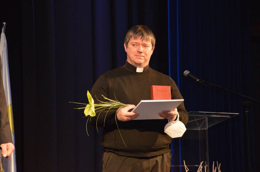 Župnik mag. Janez Žakelj je prejel srebrno odličje ZKD Brežice.