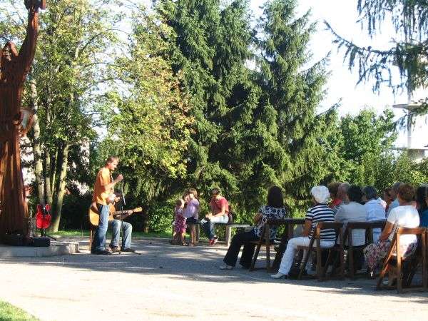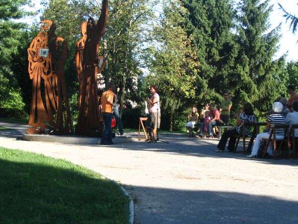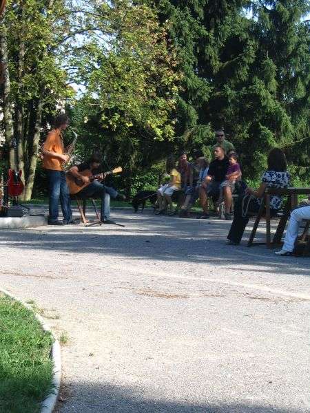 Gledalce sta navdušila z jazzovsko obarvanimi priredbami znanih tujih in slovenskih pesmi, kot so na primer Tears in heaven, Yesterday, Orion, Nad mestom se dani in druge. Omenjena prireditev je bila četrta v ciklu z naslovom Poletni večeri, ki ga organizirata Javni sklad RS za kulturne dejavnosti, Območna izpostava Krško in Valvasorjeva knjižnica Krško v sodelovanju s KD Gilda Krško. Organizatorji želijo predvsem poživiti dogajanje in polepšati poletne večere tudi prebivalcem levega brega Save, saj so se dosedanje prireditve odvijale v starem delu Krškega. V nedeljo, 15. avgusta, pa bo v spominskem parku potekal drugi del prireditve Dalmatinovi večeri, na katerem se bo predstavil Aristel Škrbić na marimbi.