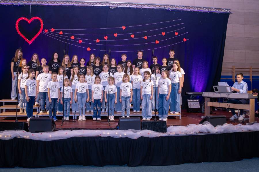 Otroški pevski zbor in mladinski pevski zbor sta svoj nastop začela s slovensko himno, nato pa sta navdušila občinstvo z dvema slovenskima ljudskima pesmima