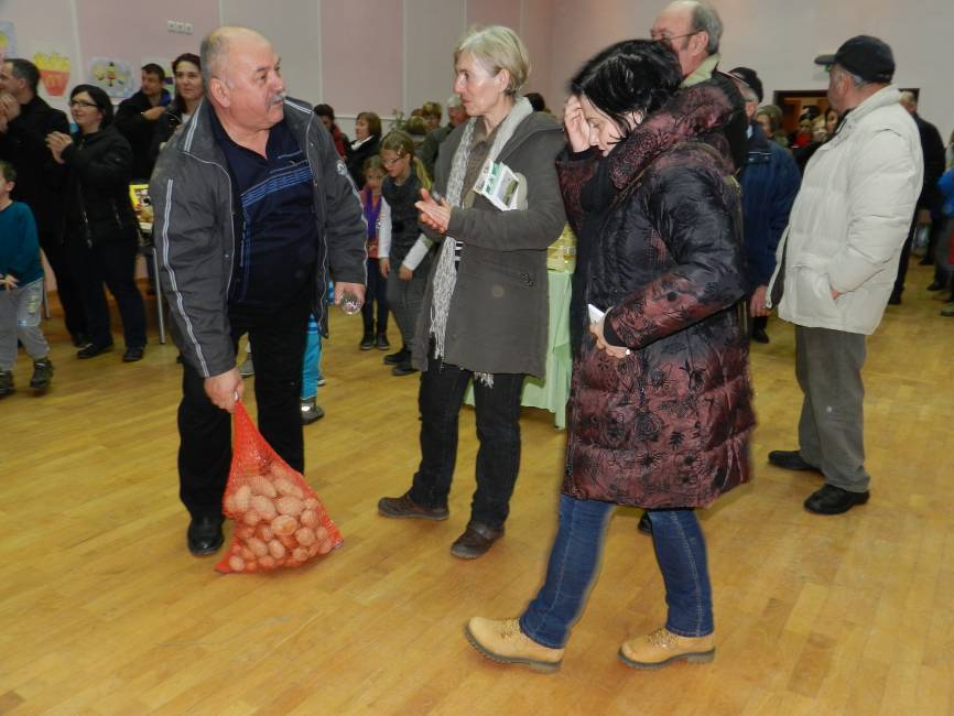 izmenjava semen ter zabavna igra »Ugani, koliko tehta krompir«. V ugibanju teže krompirja, ki ga je na domači njivi pridelal povezovalec prireditve
