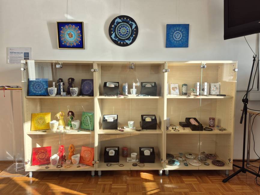 Njene mandale ne govorijo le skozi oblike in barve, temveč skozi energijo, ki jo Martina vliva v vsako potezo. Dovolite, da vas ta energija ovije, da vas popelje v svet svetlobe, miru in tihe radosti. Naj bodo te mandale kot svetlobni portali, ki nas spomnijo, da tudi mi nosimo v sebi ustvarjalno iskro,« je del opisa razstavljenih del, ki so na ogled do 8. novembra v odpiralnem času knjižnice.