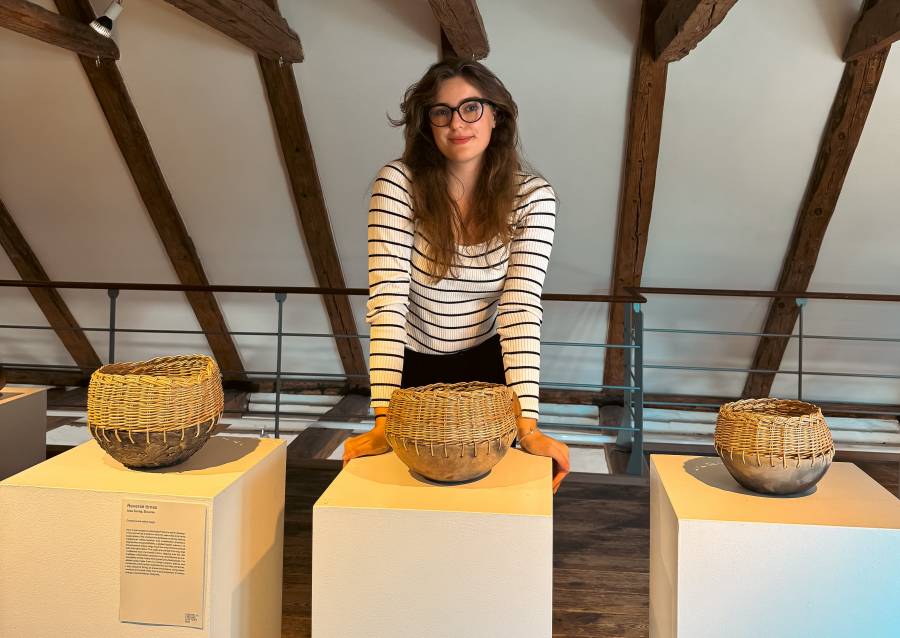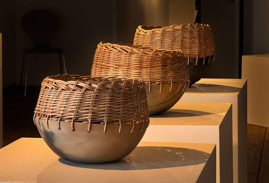 Nika Šantej v ’Reverse Times’ skozi preplet pletarstva in keramike raziskuje svoje osebne korenine, saj