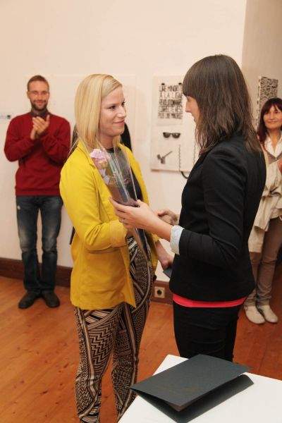 »Strokovna komisija v sestavi slikarja Jožeta Šubica, Vladimirja Lebna ter slikarke Danice Ul Šubic je naziv Mladi avtor 2012 letos podelila Sevničanki Ani Jazbec. Mladi, nadarjeni avtorici bo v naslednjem letu, in sicer v mesecu avgustu omogočena prva samostojna razstava na sevniškem gradu,« je v uvodu dejala vodja sevniške izpostave JSKD Katja Pibernik. Študentka 2. letnika oblikovanja tekstilij in oblačil na Naravoslovnotehniški fakulteti Univerze v Ljubljani je pritegnila zanimanje strokovne komisije z nevsakdanjim umetniškim delom, za katerim se skriva zanimivo sporočilo. Z njim je želela opozoriti, da postajamo preveč odvisni od vse modernejše tehnologije, zaradi katere pozabljamo na naravne danosti. »Vse postaja samo virtualno, ni več osebnega stika,« je dejala Ana Jazbec, ki je letošnjega marca sodelovala tudi kot samostojna oblikovalka na modni reviji v okviru projekta Očistimo Slovenijo. Obiskovalke in obiskovalci, ki so tudi imeli možnost izbrati naj mladega avtorja oz. avtorico, pa so se odločili za mlado ljubiteljsko slikarko Ivo Davidovič iz Dobove.
