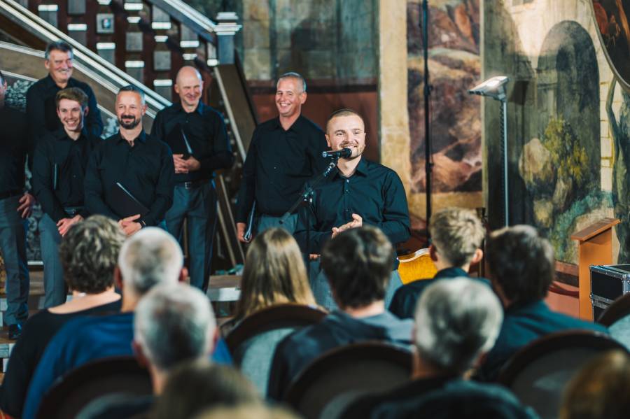 Moški pevski zbor Kapele z zborovodkinjo Katjo Bogovič
