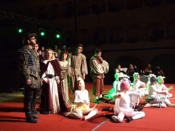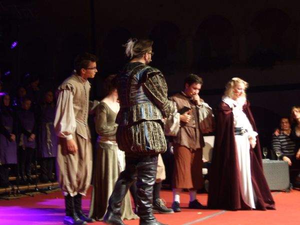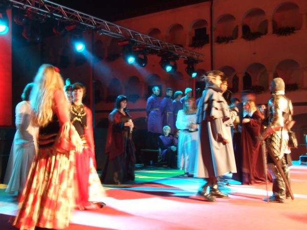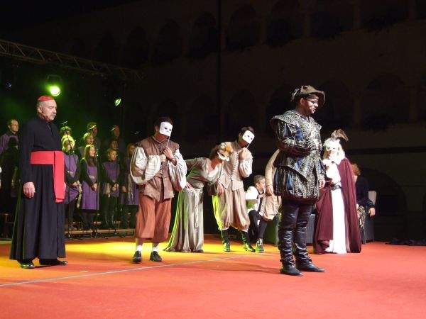 Pod oboki nekdanjega kostanjeviškega samostana, v katerem deluje Galerija Božidar Jakac, je bilo v soboto zvečer nekaj sto obiskovalcev priča izjemnemu spektaklu – uprizoritvi muzikla Franziskus v izvedbi Pihalnega orkestra občine Šentjernej in Plesne skupine Harlekin Kostanjevica na Krki.