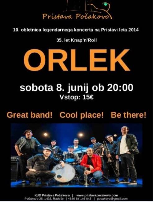 prizorišče koncerta zasavske skupine Orlek, ki v letošnjem letu obeležuje 35 let delovanja. Skupina, ki je nastala leta 1989, je poslušalke in poslušalce osvojila z mešanico rock’n’rolla, pihal, trobil in harmonike ter z unikatnim ‘folk punk polka rockom’, družbeno-humorno obarvanimi besedili in energično odrsko izvedbo, ki pogosto vključuje tudi slovenske narodne in ponarodele skladbe. Orleki so: