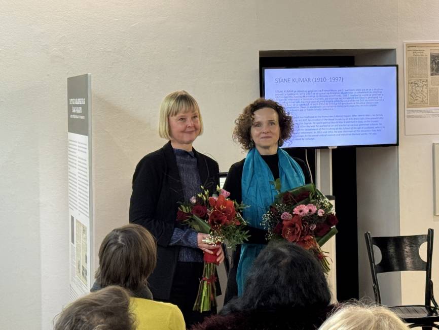 Razstavo sta predstavili kustosinji Andrejka Vabič Nose (desno) in Mihaela Kovačič.
