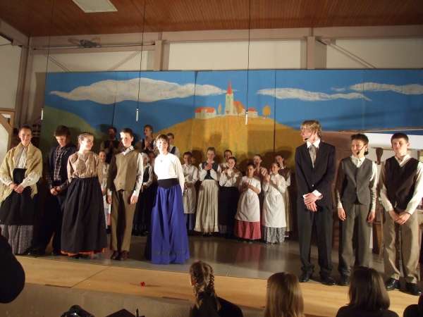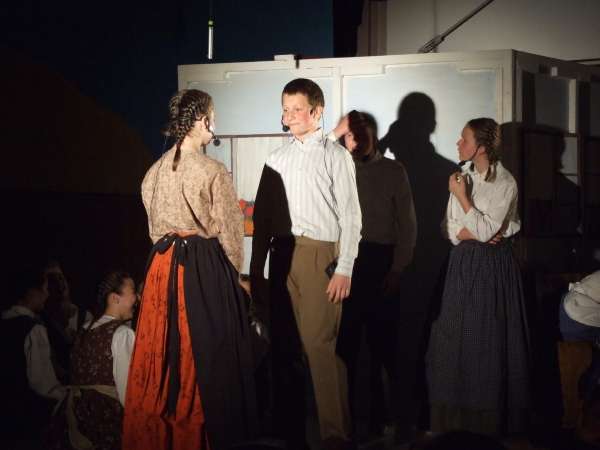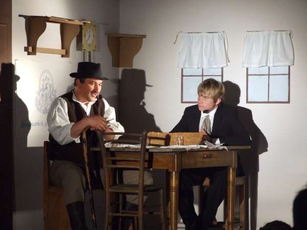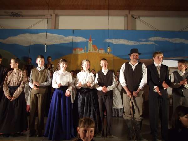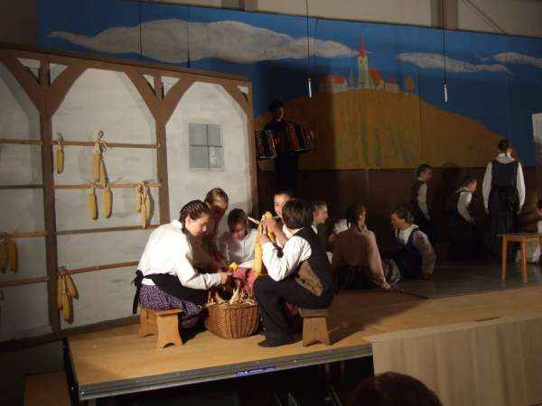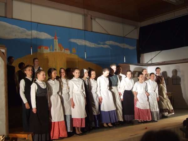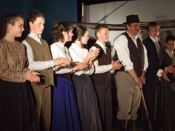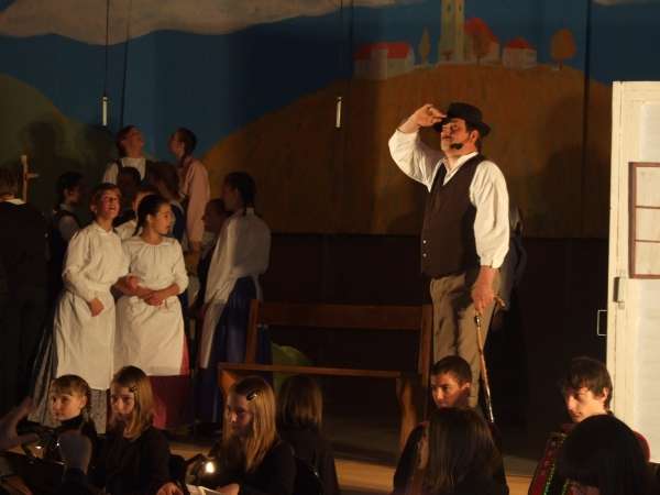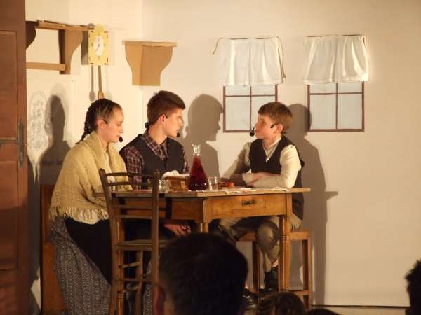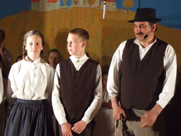 izjema je le vloga starca, ki obuja spomine, uprizoril ga je Slavko Mihelin, glasbenik in vsestranski hišnik na tamkajšnji šoli.