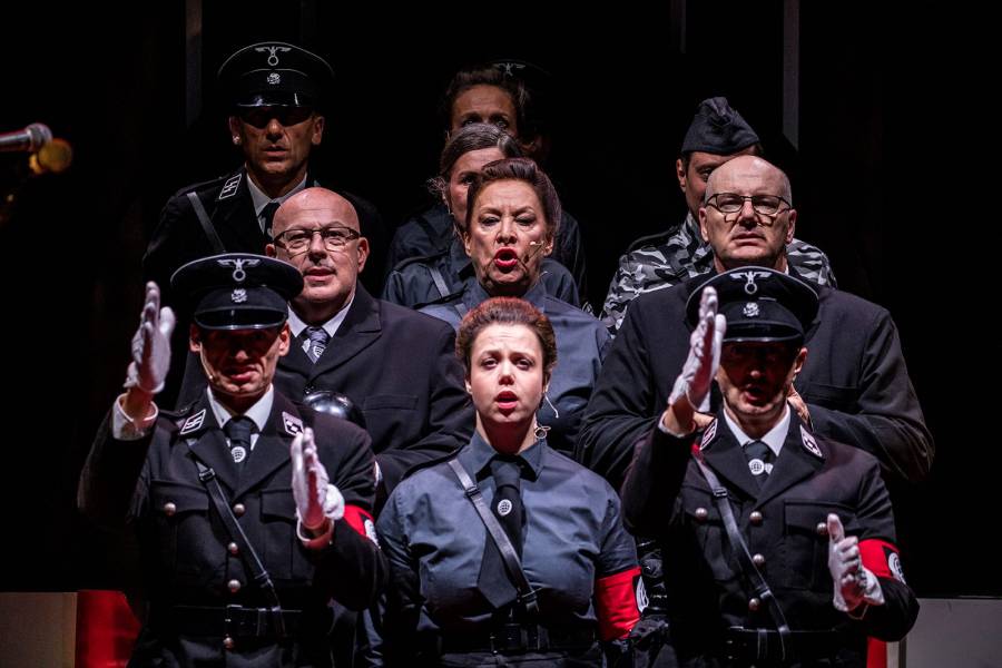 Nastop v predstavi Odilo. Zatemnitev. Oratorij.