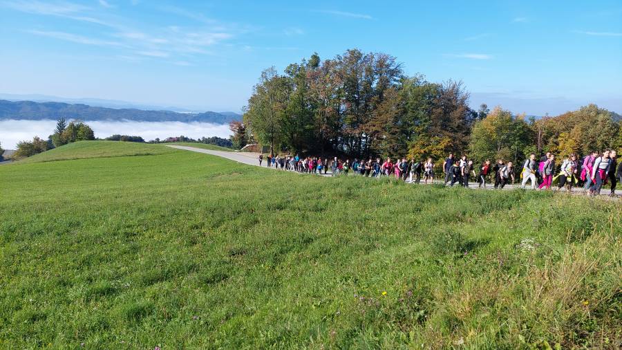 Na Lisco smo hodili približno 3 ure. Pot je bila strma in vijugasta, nekajkrat smo se vmes tudi ustavili, da smo si malo odpočili in popili malo vode. Prispeli smo na Lisco in se vsi skupaj fotografirali. Potem smo imeli prosti čas za igro in hkrati priložnost občudovati čudovit razgled v dolino. Nato smo pojedli malico. Okoli 12. ure smo se zbrali in odpravili nazaj v dolino. Pot nazaj je kar hitro minevala, saj je imel vsak super družbo. Vračali smo se po isti poti in okoli 14.10 prispeli na želižniško postajo, vmes smo tudi malo tekli.