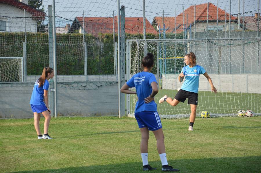 Med novinarsko konferenco je bilo na brežiškem stadionu kar živahno, med drugim je imelo svoj trening tudi nekaj članic brežiškega nogometnega kluba.
