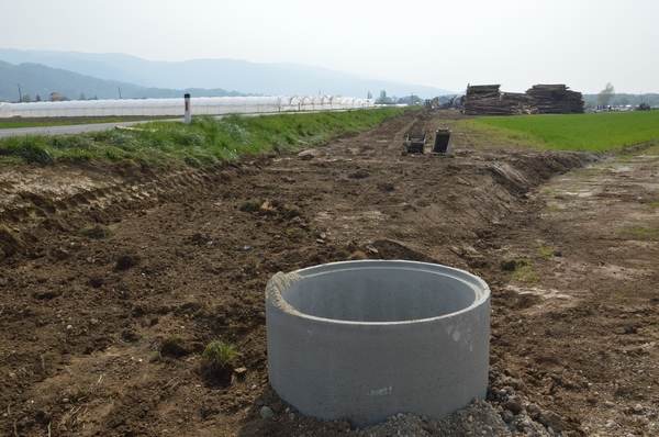 Na poljih med Velikim in Malim Mraševim, Kalce-Naklom in Pristavo že nekaj tednov poteka gradnja druge faze namakalnega sistema Kalce-Naklo II, s katerim se bo možnost namakanja iz reke Krke razširila še na 155 hektarjev zemljišč severno od ceste Kostanjevica na Krki – Brežice.