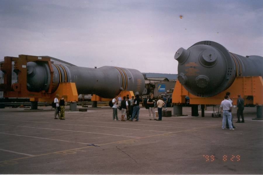 Ob včerajšnjem prevozu najstarejšega in največjega slovenskega čolna pomorske Policije P-111 iz Luke Koper v Park vojaške zgodovine v Pivki smo obudili spomin na prevoz dveh novih uparjalnikov za jedrsko elektrarno v Krškem leta 1999. Slednja sta bila 28. avgusta v koprsko pristanišče pripeljana z ladjo iz Hamburga, ki je krenila na pot iz severa Španije deset dni pred tem.
