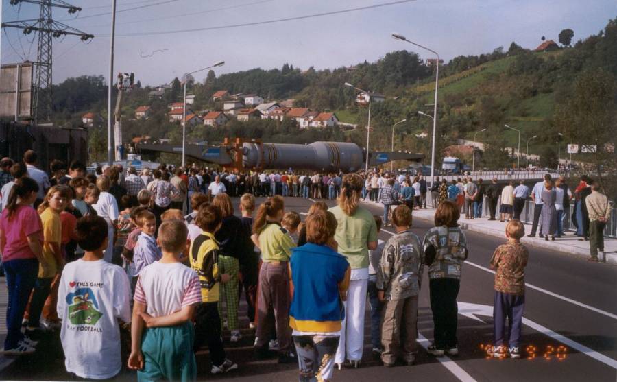 Uparjalnika pa nista bila edini težek tovor, ki je tedaj potoval po naših cestah, saj sta bila v avgustu in septembru leta 1999 z železniške postaje Brestanica v Termoelektrarno Brestanica prepeljana tudi dva generatorja za nova proizvodna bloka v brestaniški plinski elektrarni.