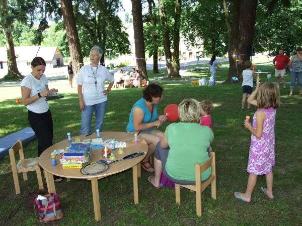 Mladinski center Brežice je v sobotnem dopoldnevu v grajskem parku ob MC organiziral 1. mini festival družine. V prijetni senci mogočnih dreves so njihove animatorke in prostovoljci zabavali najmlajše v igralnem, pravljičnem in ustvarjalnem kotičku, pritegnil je tudi napihljiv skakalni grad in igrala.