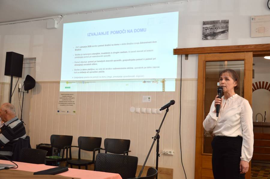 Pomočnica direktorja ZD Brežice za področje zdravstvene nege Helena Hostar je predstavila pomoč na domu in dolgotrajno oskrbo.