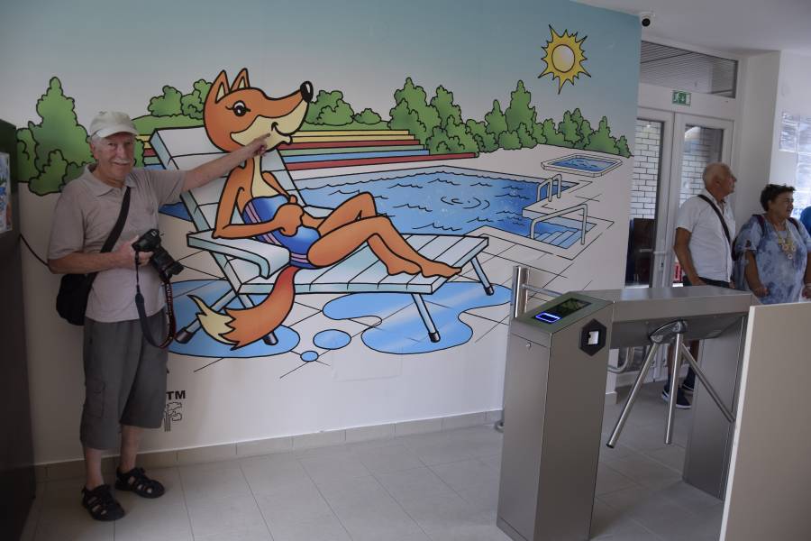 Vhodni del, ki vodi na zunanje sevniško kopališče, krasi likovno delo radeškega umetnika Bojana Sumraka.