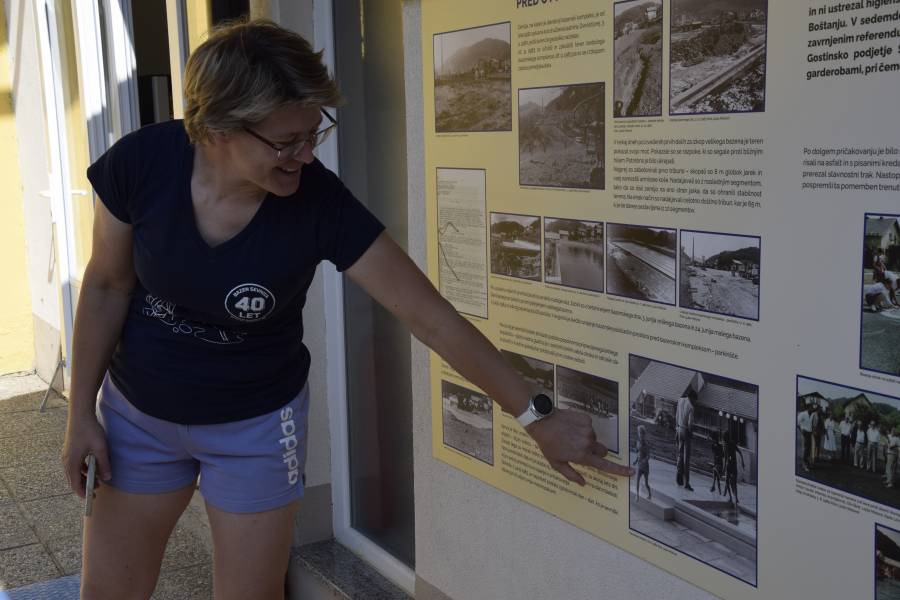 Estera Savič Bizjak. Navzočim je privabila nasmeh na obraze s spomini, kako se je pred odhodom na delo v tekstilno tovarno Jutranjka osvežila v bazenu: »Mož in hčerki sta še spali, ko sem se preko kopalk ogrnila s kopalnim plaščem, sedla na svojo ’štirico’ (motor Tomos APN 4, op. p.) in se zapeljala na bazen. Po jutranjem plavanju sem bila ob 6.45 že na svojem delovnem mestu – sveža kot roža.«