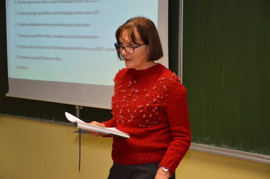 Hribar je še navedla, da je bilo v lanskem letu v društvu 406 članov, kar je za 70 več kot leta 2021, niso pa še dosegli številk iz predkoronskega obdobja, ko je bilo tudi že največ 469 članov. Vsak teden oz. vikend imajo člani na voljo razpisan izlet, ki se ga lahko udeležijo, zelo aktivni sta tudi dve pohodniški skupini – Torkarji in Navihanci. Izšla je tudi 37. številka Planinskih utrinkov, ki jo je kot že vsa leta do zdaj uredila