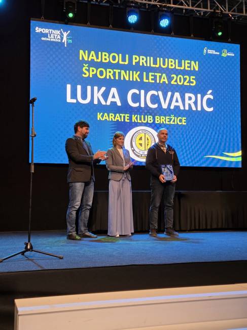 Luka Cicvarić (Karate klub Brežice). Luka je zbral največ glasov občanov in si tako poleg nagrade Perspektivni športnik leta 2025 prislužil tudi laskavi naziv Najbolj priljubljen športnik leta 2025. Hvala za vse glasove in izkazano podporo.