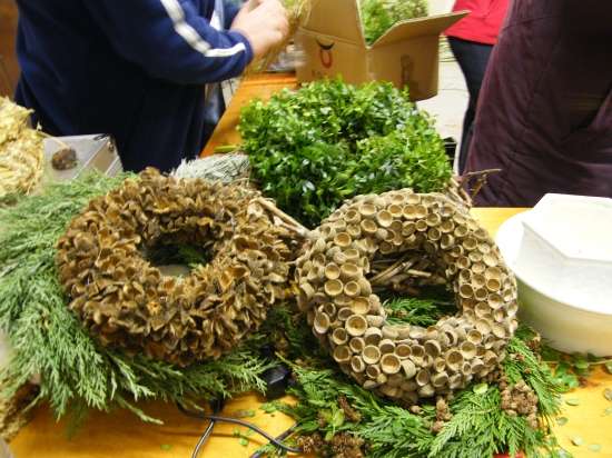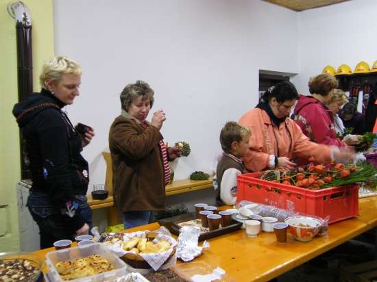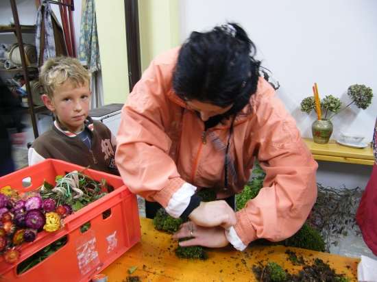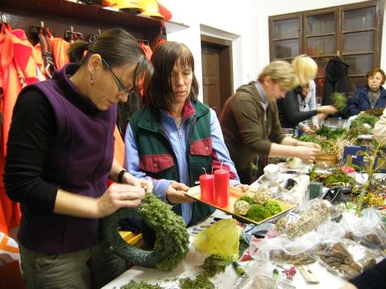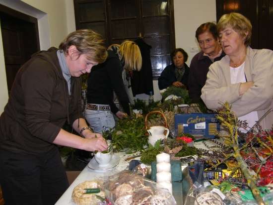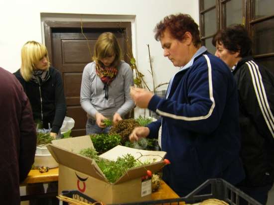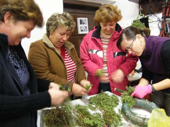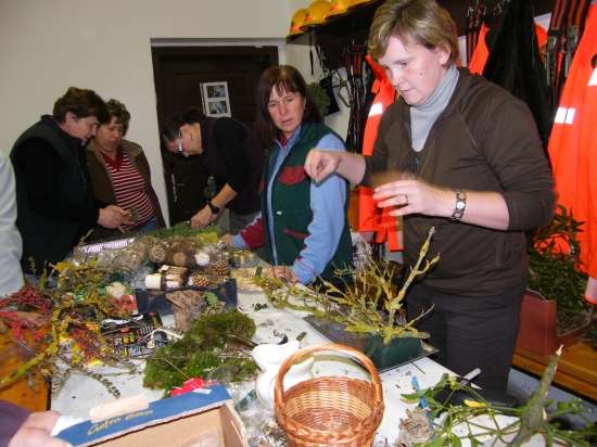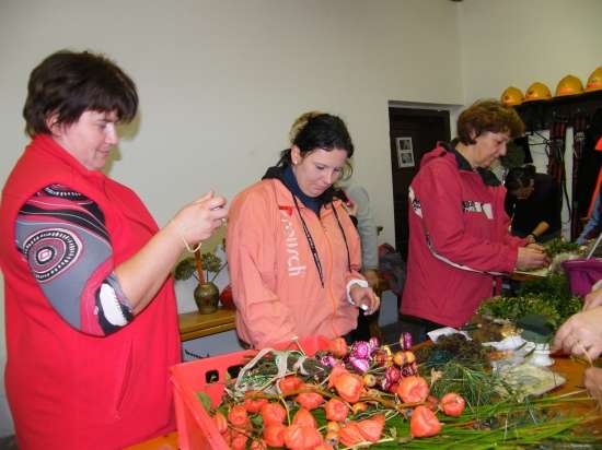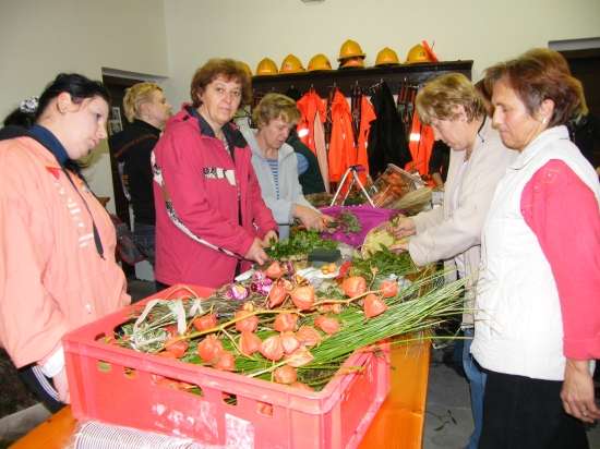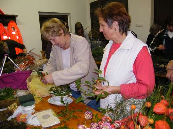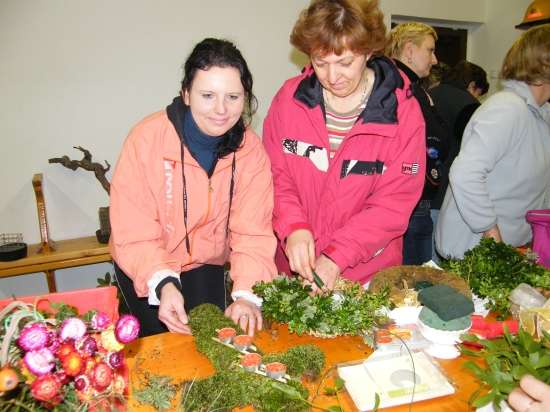 V današnje rahlo s soncem obsijano sobotno popoldne se je preko 30 članic Aktiva kmečkih žena Krško polje zbralo v prostorih Gasilskega doma Velika vas, da bi se preizkusile v izdelovanju aranžmajev za različne priložnosti. S sabo so prinesle najrazličnejše naravne materiale in najprej opazovale spretne roke mentorice Andreje Bartolj Bele, ki je univerzitetna diplomirana inženirka agronomije ter na Grmu Novo mesto, Center biotehnike in turizma, poučuje področja hortikulture in cvetličarstva, nato pa pričele tudi same ustvarjati.