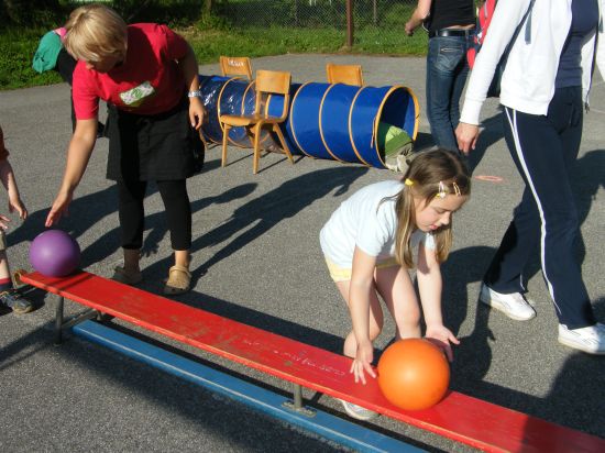 Palčki, ki obiskujejo centralni leskovški vrtec in njegovi enoti v Nakupovalnem centru Krško in v Velikem Podlogu, je izvedlo različne spretnostne vaje z žogo, kot je kotaljenje različno velikih žog okoli ovir in po različnih površinah, metanjem v koš in skozi obroče, podiranje kegljev iz plastenk, ciljanje iz škatel zloženih tarč, vožnjo s tricikli, skiroji in poganjalčki, skakanje v vrečah, preskakovanje ovir in plezanje skozi tunele, med drugim pa so se pomerili tudi v vleki vrvi, kotalili žogo po velikem platnu, metali obročke ipd. B.M.