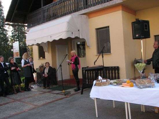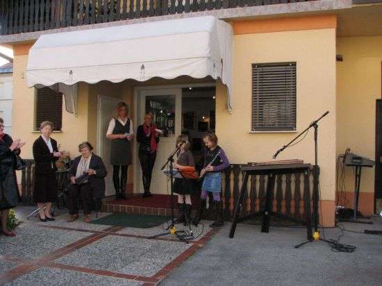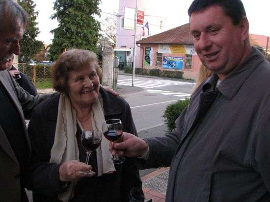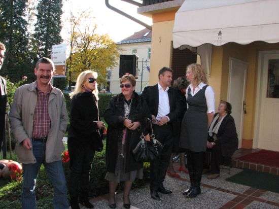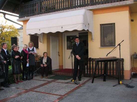 Praznovanje je bilo še za kanček slovesneje v popoldanskem času, ko se je na prostoru pred trgovino, ki s pogledom zre preko ceste na vodovodni stolp in občinsko zgradbo, zbrala posebna skupina obiskovalcev, ki jih je nagovoril tudi brežiški župan Ivan Molan.