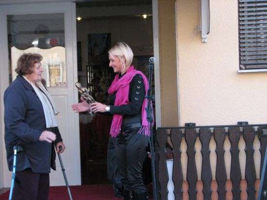 Lastnica Melita Šinko pa je za letošnje oktobrske nagrajence pripravila prijetno presenečenje. Marjanca Ogorevc, Franci Arh in Nuša Derenda so prejeli unikatno darilno skulpturo Brežiške Eve, ki jo je upodobil mošanski likovnik in kipar Andrej Pinterič.
