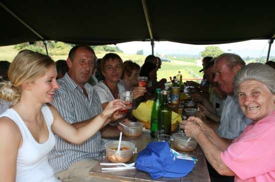 Začetek in spoznavanje je trajalo kar nekaj časa, vse pa sta s fotoaparatom in kamero beležila Darko Škrlec in Darko Bajs, ki jim je vse dogajanje pod večer prikazal še na velikem platnu. Udeležence sta pozdravila domačin Stanko Barkovič in predsednik krajevne skupnosti Marjan Žibert, vaški svetnik Božidar Bajs pa je najstarejši vaščanki Olgi Lončarič izročil spominsko plaketo. Rajanje in druženje ob vzpodbudi domačega dueta Ivana in Vlada je trajalo pozno v noč, najpogumnejši pa so vztrajali vse do nedeljskega jutra. Iniciatorji in odbor so dobivali številne pohvale in zaključek je bil logičen. Taka srečanja morajo postati vsaj trienale, če ne celo bienale. Pobudnika vsega tega, Ivan in Božo sta bila lahko po vseh priznanjih na koncu upravičeno ponosna.