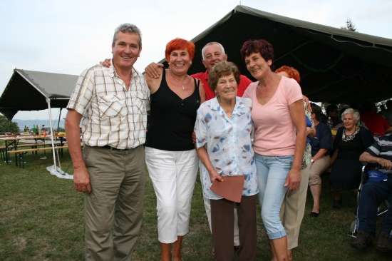 Predzadnjo soboto v mesecu avgustu so v Brezju pri Veliki Dolini končno le uresničili nekaj let staro idejo, da se na srečanju dobijo vsi, ki še živijo doma in tisti, ki so jo mahnili v širni svet. Nevihtne napovedi jih niso prestrašile. Že od jutra so se dvorišča domačij polnila z jeklenimi konjički Brezancev iz „tujine". Vse se je pričelo opoldne z mašo na prireditvenem prostoru, ki jo je bral domačin Alojz Brce. Dva šotora je napolnilo 250 ljudi. 96, ki so še na domačijah in kar 154, ki so dom in družino našli drugod.