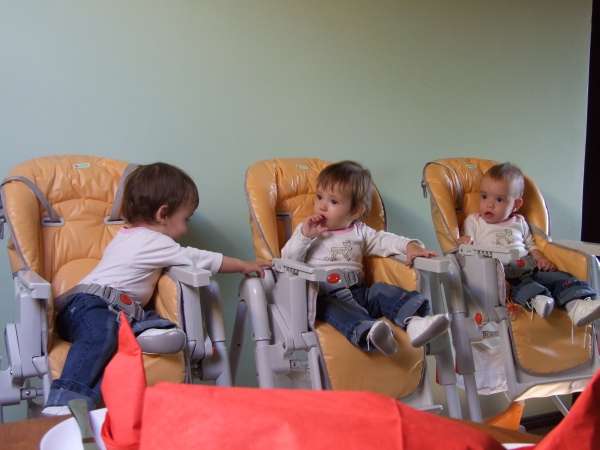 Lanski 20. oktober bo ostal prav posebej zapisan v družini Kos-Ajster, Tina Ajster in Bojan Kos sta postala srečna starša treh deklic. Stela, Dolores in Sara, ob našem takratnem obisku drobcene in krepke deklice, so danes dopolnile prvo leto. Punce so neverjetne, nasmejane, dobrovoljne in radovedne, prav nič boječe novih obrazov, pa tudi že mobilne, saj se plazijo in hodijo ob opori. Danes jih je obiskal njihov boter, sicer družinski prijatelj, župan Ivan Molan s sodelavkama, Jasmino Molan in Lavro Kreačič in trojčicam prinesel simbolno darilo.