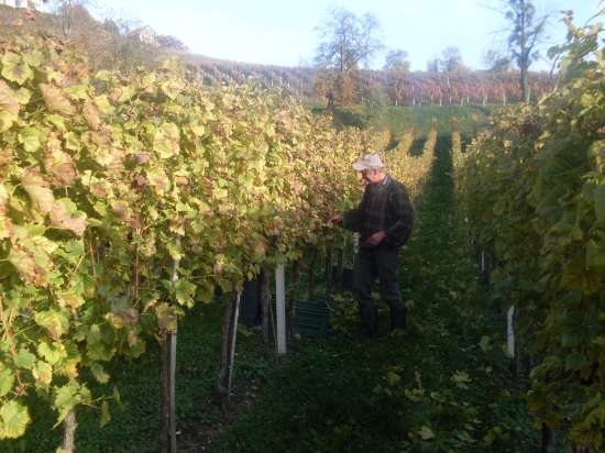 Družina Rajterič - Pavlin iz Orešja na Bizeljskem je na brežiški občinski praznik, 28. oktobra, v goste povabila deset sorodnikov in prijateljev, ki so pomagali v pozni trgatvi. Obrali so 1500 trt laškega in renskega rizlinga v vinogradu v idiličnem okolju nad cerkvijo sv. Magdalene skoraj v središču naselja,