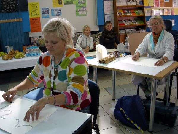 V soboto in nedeljo je v Mladinskem centru Sevnica potekala dvodnevna likovna delavnica v organizaciji OI JSKD Sevnica, ki jo je vodila znana sevniška likovnica Jerca Šantej. Uvodni del je bil sprostitveno-ustvarjalen ob glasbi, ob kateri so udeleženci delavnice z zaprtimi očmi risali različne oblike na bel list papirja.