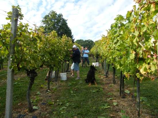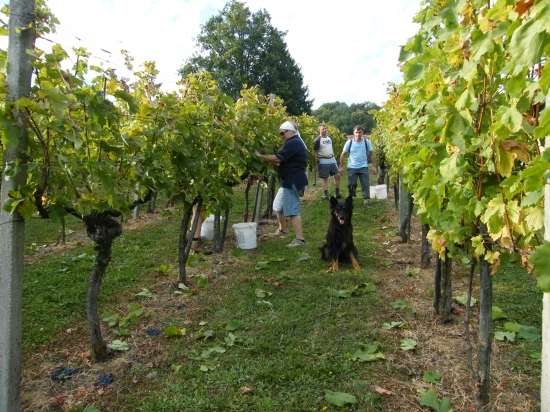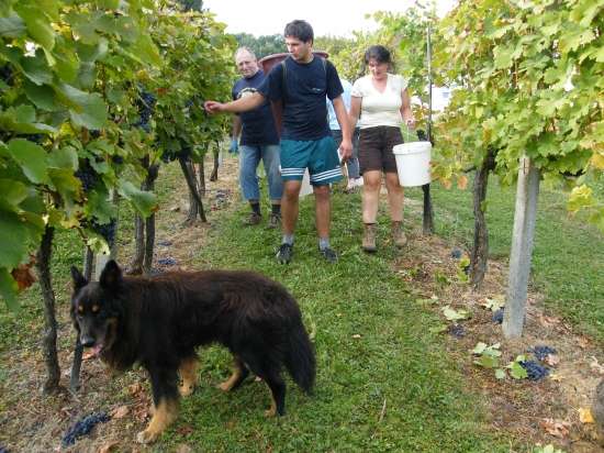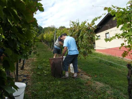 Trgatev 2009 se že nagiba h koncu, saj je v vinogradih ostalo le še tisto grozdje, ki dozori najpozneje npr. žametna črnina. Včeraj smo v Medvedovem vinogradu na Libni ujeli skupino trgačev, ki je v prelepem sončnem popoldnevu trgala letošnji pridelek grozdja. V kleti pa je že zadišalo po moštu. M. K. M.
