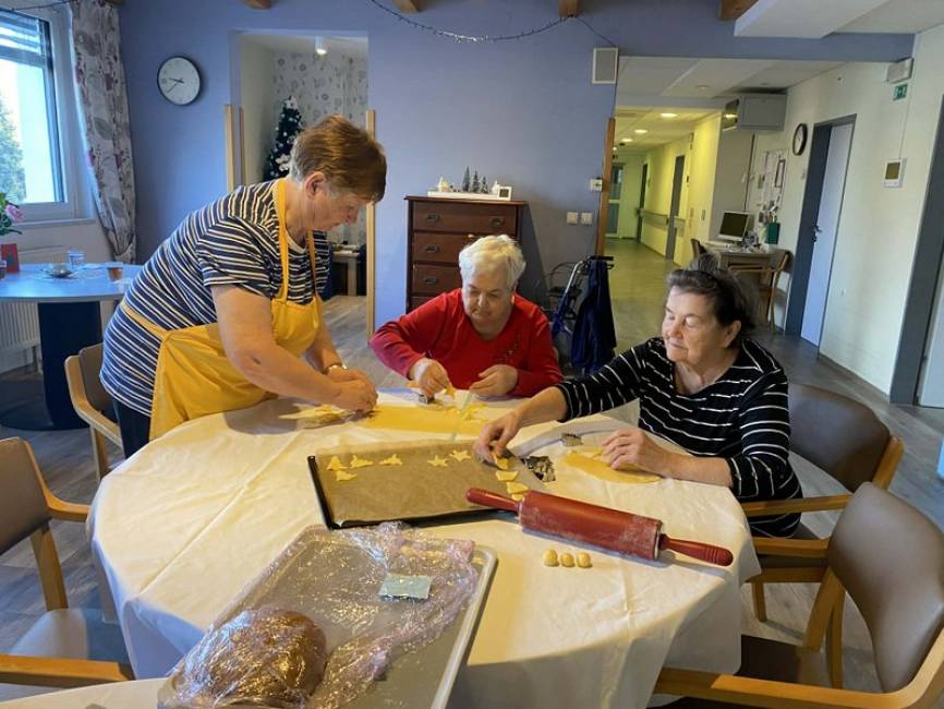 V decembrskih dneh je po gospodinjskih skupinah že tradicionalno potekala skupna peka piškotov stanovalcev in zaposlenih. Ob sladkih dobrotah, prijetnem klepetu in vonju po praznikih so nastajali lepi trenutki, ki jih bomo še dolgo nosili v spominu.