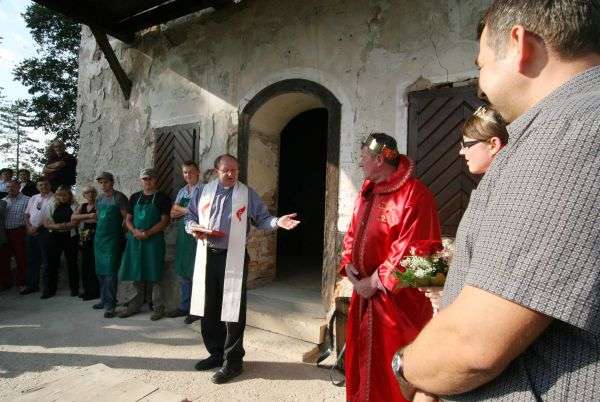 Srečka Ocvirka, cvičkove princese in kralja cvička ter blagoslovom grajskega vinograda, kar je opravil sevniški župnik