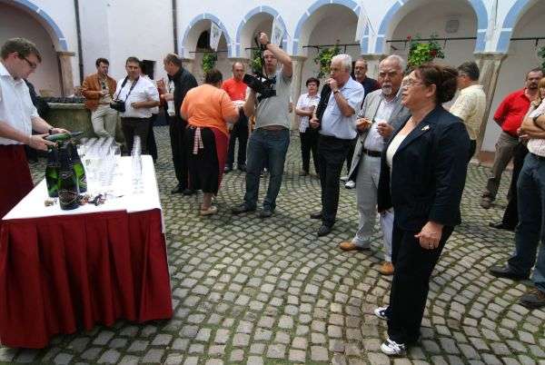 Društva vinogradnikov Studenec so prikazali ročni način mletja grozdja s pomočjo mreže na leseni kadi. Po trgatvi grozdja in zmletju so se gostje odpravili v grajsko vinoteko, pred katero so uvodoma nazdravili s penino Valentino, s penino priznanega sevniškega enologa