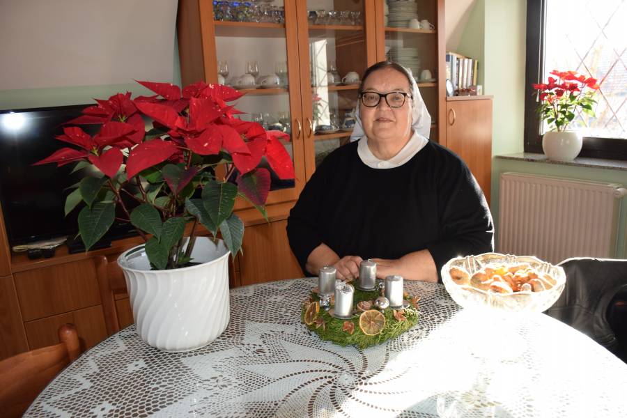 Za konec se dotakneva še praznikov oz. njihovega pričakovanja v adventnem času. Sestre si v začetku adventa določijo skupne aktivnosti, npr. meditacijo in molitev v tišini, sodelujejo pri molitvah v župnijski cerkvi, imajo postne dneve, ko denar namesto za hrano namenijo ubogim, saj veliko dajo na dobrodelnost. »Vsak teden imamo večere, ko v tišini opravljamo vsaka svoje delo in se ne pogovarjamo, čeprav veste, kako je za ženske to potrebno,« še pove, s čimer gredo ravno v nasprotno smer kot svet zunaj, ki je v decembru glasen in svetleč. »Ko sem prišla v Avstrijo, sem bila navdušena nad božičnimi sejmi, ki jih v naši Jugoslaviji ni bilo. Zdaj si včasih spet želimo tistega miru in tišine … Kot da ljudje ne znajo več čakati, ampak mora biti vse takoj in tukaj. Ne čutimo več pričakovanja božiča, ki bi moral biti vrhunec, ne pa konec praznovanja,« pripoveduje. Praznične luči se tako v njihovi hiši prižgejo šele na predbožični dan. Bralkam in bralcem želi pred prazniki položiti na srce predvsem misel, da so v naših življenjih najbolj pomembni medsebojni odnosi in da ga naj ne izkoristimo le za 'lomastenje' po trgovinah – čeprav lahko največ ljudi srečaš prav tam –, »ampak naj bodo eden drugemu največje darilo«, torej naj predvsem najdejo čas drug za drugega, se družijo in skupaj nasmejejo. To od nas pričakujejo predvsem otroci, »pa tudi odrasli rabimo prisrčen, topel medsebojni odnos, ki nas poveže bolj kot vsa darila na svetu«.