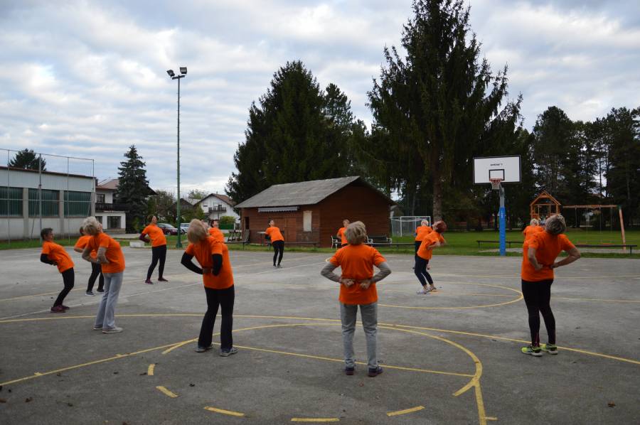 članice skupine Šole zdravja v Krški vasi. Zbrale so se na tamkajšnjem asfaltnem igrišču in že takoj prvi dan jih je presenetila visoka udeležba, saj je prišlo kar 27 pretežno sovaščank pa tudi iz sosednje vasi Boršt. Nekaj jih je sicer kasneje odnehalo, še vedno pa jih vsako jutro v povprečju hodi čez 20.