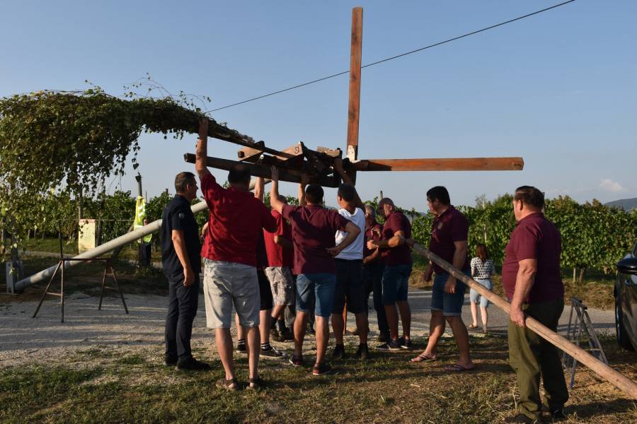 Klopotec je bil s pomočjo pridnih vinogradniških rok postavljen nadvse hitro.