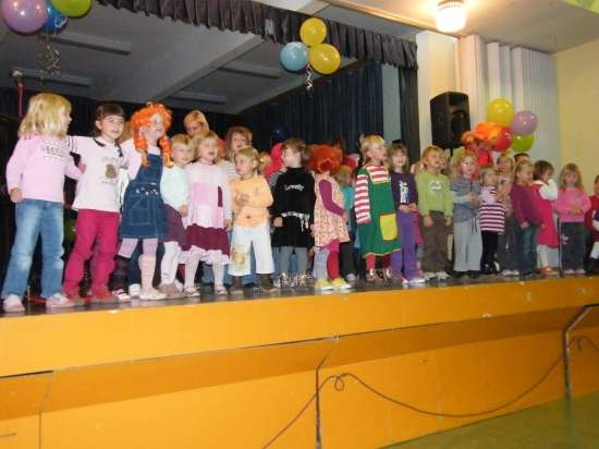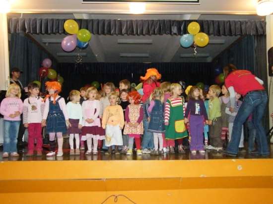 Pika Nogavička iz Gledališke skupine Anima iz Medvod, ki je vključila v praznovanje kajpak tudi vse otroke, ki obiskujejo Centralni vrtec pri OŠ Leskovec in njegovi enoti Mali Princ v Mercatorjevem nakupovalnem centru in Vrtec Veliki Podlog. In se je pelo na ves glas, plesalo in kajpak tudi prešerno smejalo! Kot je dejal ravnatelj šole