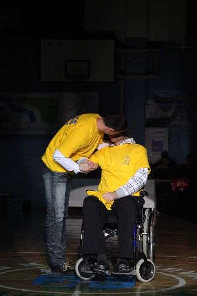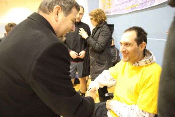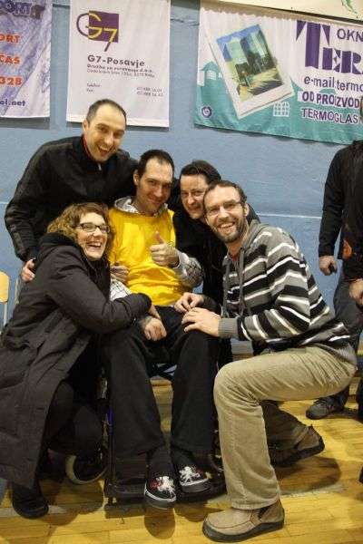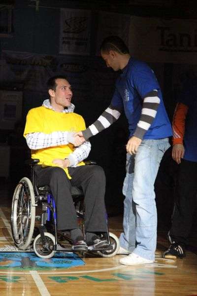 Dejan Mijović si je tekmo ogledal z velikim zanimanjem in na trenutke se je zdelo, da je pozabil na svojo zgodbo, na to, da je priklenjen na invalidski voziček - njegov obraz je bil sproščen, tu in tam se je na njem zarisal celo nasmeh. Iskreno veselje in navdušenje nad potekom humanitarnega dogodka so delili tudi Dejanovi najožji družinski člani. Oče takšnega odziva in tako dobro pripravljene prireditve ni pričakoval, spregovoril pa je tudi o nesreči, ki je družino še bolj povezala. Povedal je, da Dejana redno vsakodnevno obiskujejo v Univerzitetnem inštitutu za rehabilitacijo Soča, kjer je na okrevanju že štiri mesece. Tam mu v procesu dolgotrajne rehabilitacije z različnimi fizio in delovnimi terapijami obdelujejo predvsem tiste dele telesa, ki se kakorkoli odzivajo. Trenutno je največji napredek opazen pri nogah, z rokami gre bistveno počasneje, nobenega napredka pa ni zaznati na osrednjem delu telesa, saj še vedno diha le s trebušno prepono, velike težave pa so tudi z odvajanjem vode in blata. Kljub mednarodno priznanim in izjemnim strokovnjakom tako Nevrokirurške klinike UKC kot Rehabilitacijskega centra Soča, pa želijo Dejanovi domači po odpustu iz Soče (ko ne bo moč zaznati nobenega napredka več) sinu omogočiti nadaljnje zdravljenje in rehabilitacijo v tujini. V ta namen so se že začele vrstiti humanitarne akcije, s katero želijo zbrati potrebna sredstva za nadaljnjo rehabilitacijo in eventuelne potrebne dodatne operativne posege. »Pobudnica in začetnica te akcije je Dejanova in družinska prijateljica Barbare Tihole, ki si zelo prizadeva, da bi se uresničile sedaj kar naše skupne sanje,« je dejal v klepetu Dejanov oče in s pogledom poiskal Barbaro Tihole, ki je sedela na tribuni med gledalci. Dodal je še, da občuduje Dejanovo voljo in moč, njegov optimizem in vero, da bo okreval. »V tem času, odkar poteka rehabilitacija, ga ni nikoli zajelo malodušje,« je ponosen dejal in pogledal sina, ki je zavzeto spremljal rokometna tekmo, namenjeno njemu.