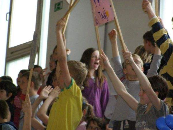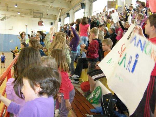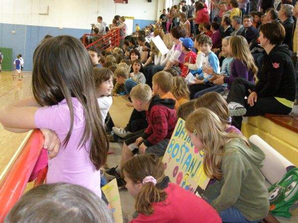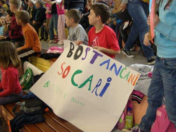 Vzdušje na tribuni ob finalnem rokometnem dejanju dveh najboljših osnovnošolskih rokometnih ekip starejših dečkov je bilo podobno valovanju morja - vsak zadetek vrstnikov z OŠ Boštanj so obiskovalci in obiskovalke nagradili z bučnimi vzkliki in z visoko dvignjenimi rokami.