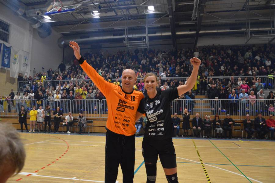 Rokometne legende pred polno brežiško športno dvorano – v ospredju pa Barbara in Gorazd