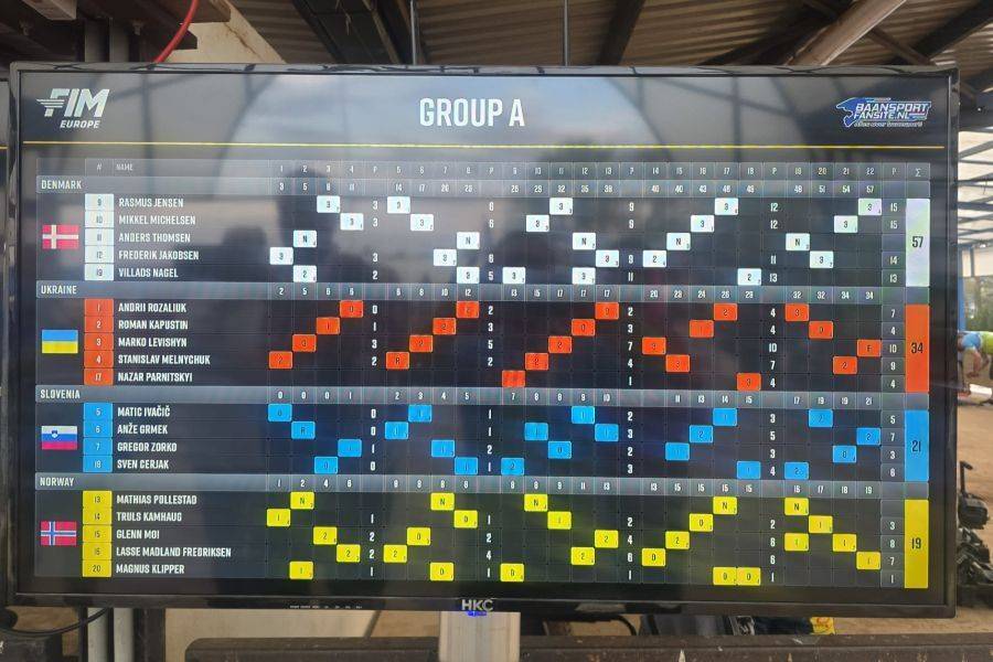 Anže Grmek, Luka Omerzel, Gregor Zorko in Sven Cerjak. V skupini A so bile tekmice slovenskih speedwayistov reprezentance Ukrajine, Danske in Norveške. Tekmeci so bili zelo agresivni in napadalni, zato je bila vsaka od dvajsetih voženj zahtevna in je šlo praktično od štarta do cilja na nož. Slovenski vozniki so skupno zbrali 21 točk, kar jim je prineslo v skupini A končno 3. mesto. Pred Slovenijo sta bili Danska, ki si je privozila zajetnih 57 točk, in Ukrajina, ki jih je osvojila 34. Od petih slovenskih voznikov je največ točk v skupno malho prispeval Grmek, in sicer sedem.