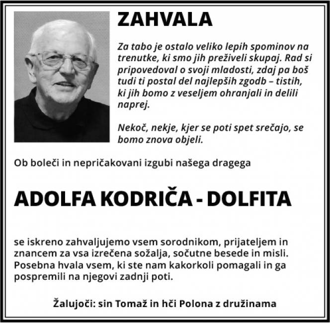 Zahvale in spomini